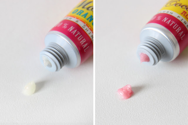 Bei Mocha Orange handelt es sich um einen farblosen Balm, der dem Namen entsprechend herrlich nach Orange und Mokka duftet, wobei der Fruchtgeruch eindeutig überwiegt. Coco Rose ist leicht rosig getönt, enthält Schimmerpartikel und duftet blumig süss. Beide Balms sind eindeutig wachsig und leicht sticky bzw. etwas klebrig. Ich habe das Gefühl, dass sie dadurch besonders lang auf den Lippen haften.