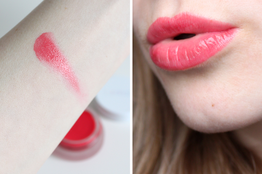 Im Tiegel wirkt Sacred wie ein kräftiger, kühler Rotton. Da das Produkt allerdings nicht 100%ig deckend ist, macht er aufgetragen einen deutlich pinkeren Eindruck. Nach ein bis zwei Stunden ist Sacred von den Lippen verschwunden, allerdings nicht ohne einen leicht rosigen Stain zu hinterlassen – I love!